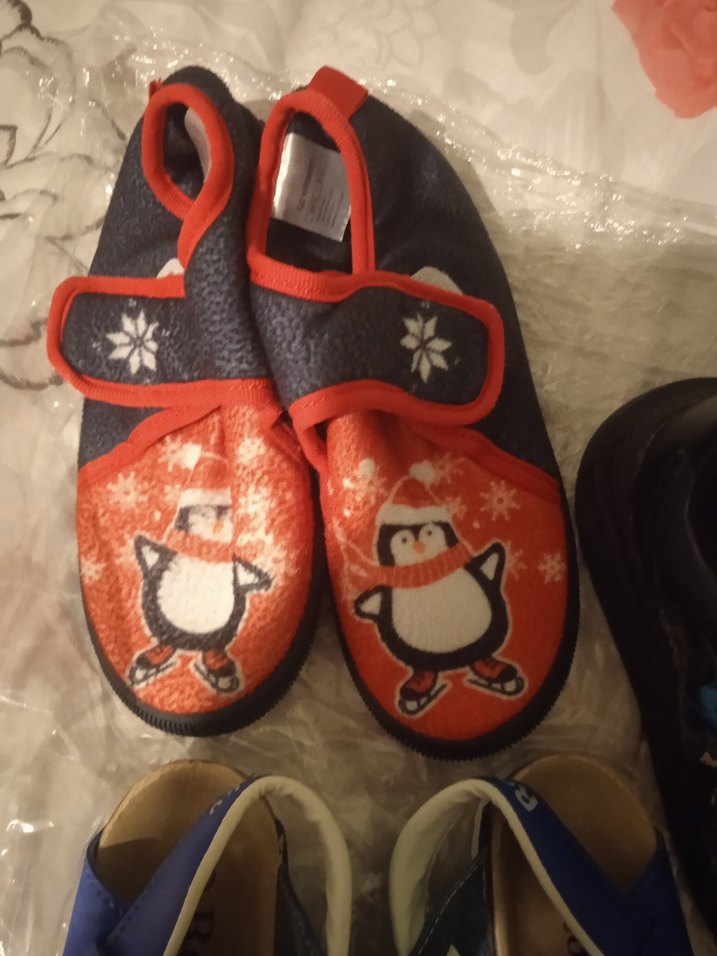 Renkli baskılı penguen desenli, yumuşak ve sıcak kumaştan erkek çocuk terliği. Ayarlanabilir cırt cırtlı ve geleneksel tarzdadır.