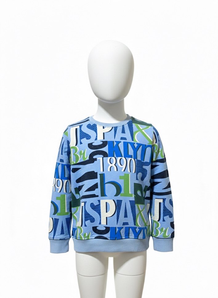 Erkek çocuk için renkli baskılı, yuvarlak yakalı ve uzun kollu sweatshirt. Yumuşak ve örme kumaştan, rahat kesimlidir. Üzerinde 'SPA' ve '890' yazıları bulunur.