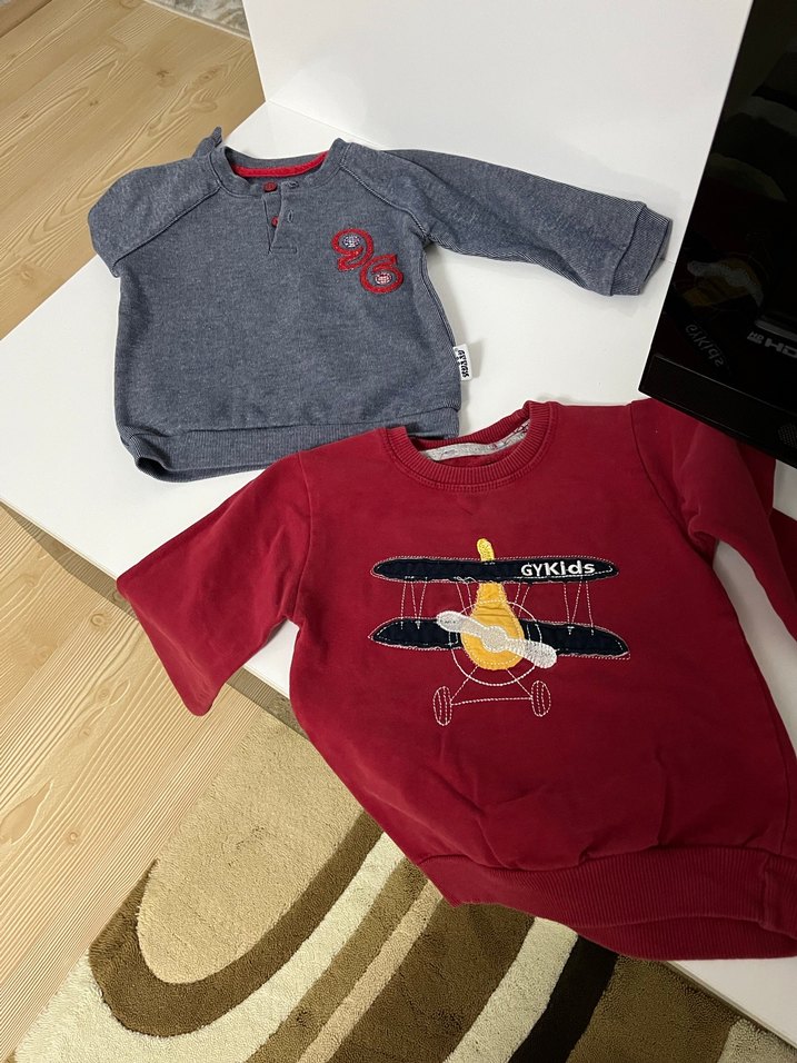 Erkek çocuklar için bol kesim, yuvarlak yaka ve uzun kollu sweatshirtler. Renkli baskılar ve düğme detayları bulunur. Yumuşak ve sıcak kumaştan üretilmiştir.