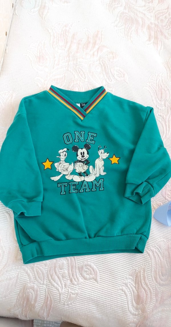 Uzun kollu, yuvarlak yakalı ve bol kesim kız çocuk sweatshirtü. Önünde renkli baskılı karakterler ve 'ONE TEAM' yazısı bulunur. Yumuşak ve sıcak kumaştan, yakada cırt cırt detaylıdır.