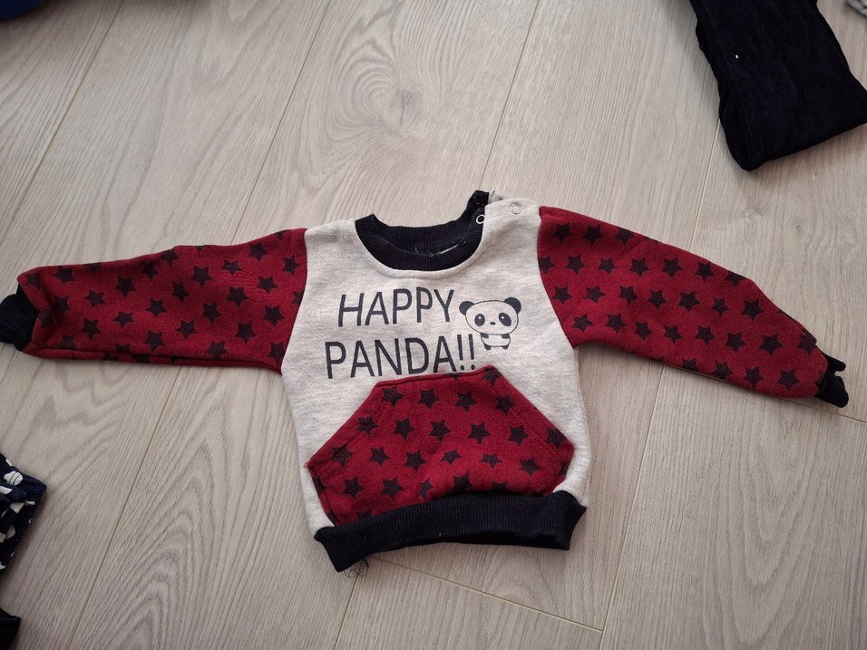 Erkek çocuk için uzun kollu, yuvarlak yaka ve bol kesim sweatshirt. Kolları renkli yıldız desenli, önünde 'HAPPY PANDA!!' baskısı var. Yumuşak ve örme dokulu kumaştan, sokak stili için uygun.