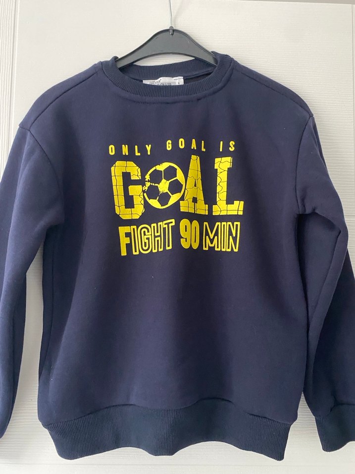 Erkek çocuk için yumuşak kumaştan, renkli baskılı, bol kesim, bisiklet yaka ve uzun kollu sweatshirt. Sokak tarzı için uygundur. ⚽