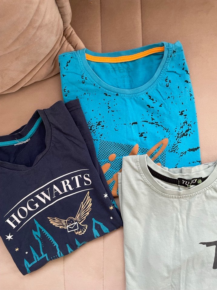 Pamuk kumaştan, yuvarlak yaka ve kısa kollu, rahat kesim renkli baskılı erkek çocuk tişörtleri. 8 adet tişört 500 tl ye veriyorum 5 adet lcw diğer 3 adet farklı marka az kullanışmıştır