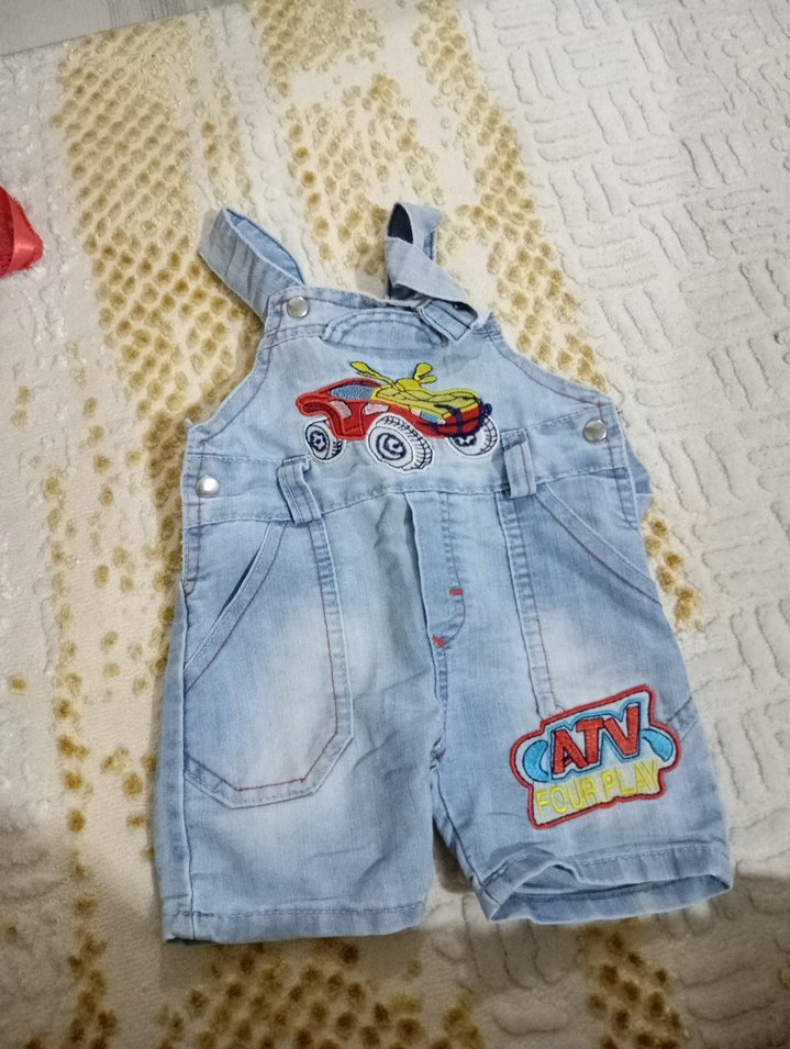 Erkek çocuk için askılı, fitted kesim renkli denim tulum. ATV desenli ve tokalı detaylara sahip, streetwear tarzında. ️