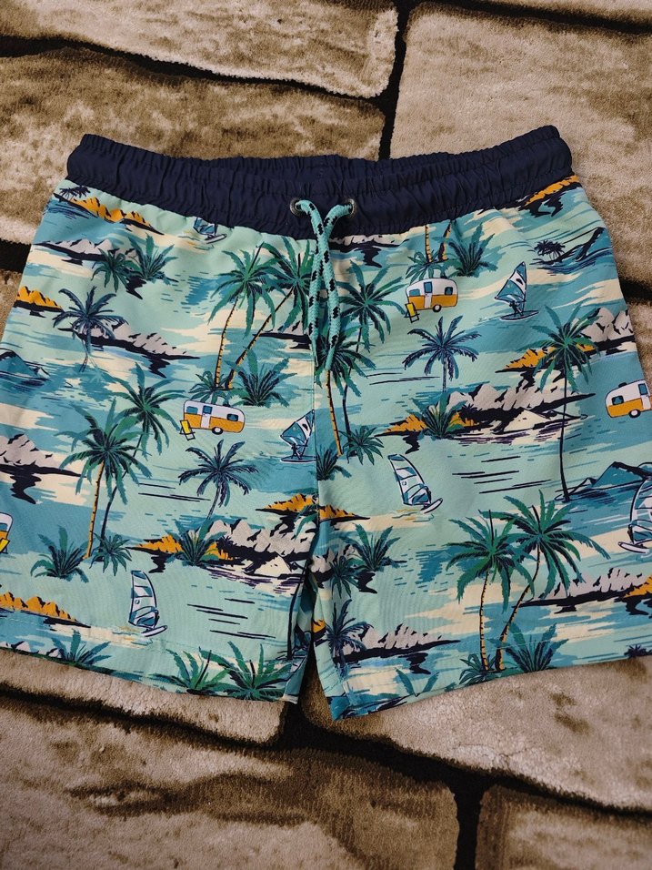 Erkek çocuklar için renkli, palmiye ağaçları, yelkenli tekneler ve karavan desenli mayo şort. Elastik bel ve bağcıklı ayar. Yenidir. Temiz ve sorunsuzdur.Alan memnun kalır. #denizsortu #deniz #sort #erkeksort