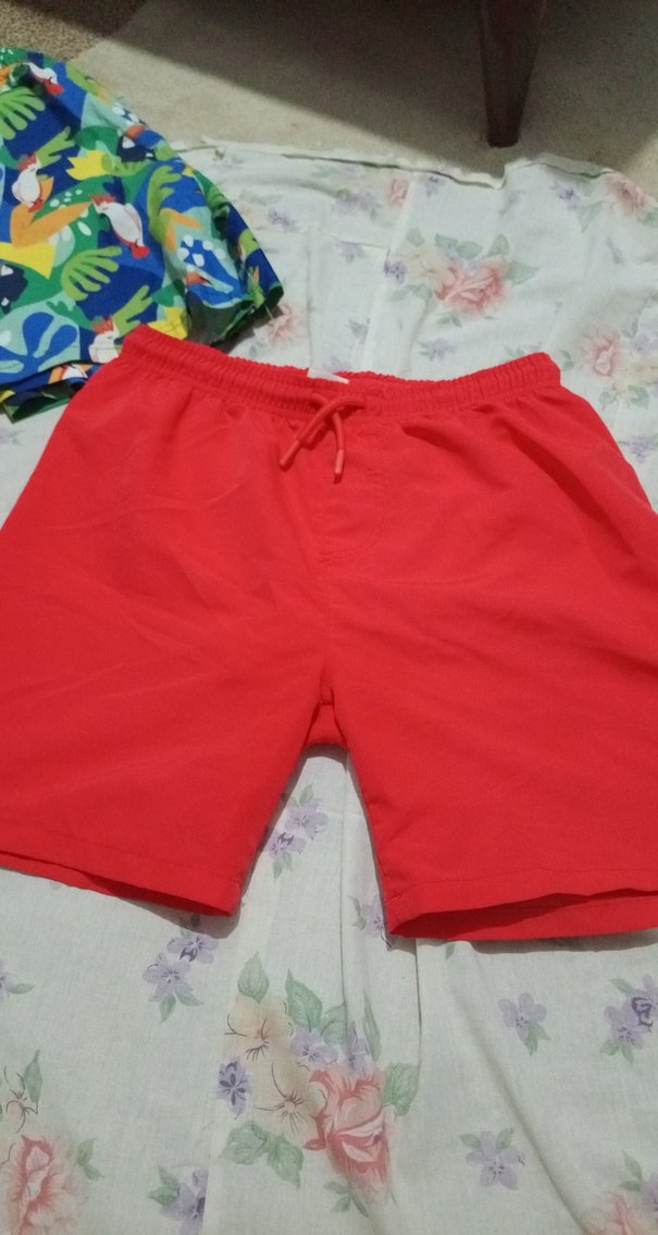 Erkek çocuklar için canlı renklerde, desenli ve düz kırmızı şortlardan oluşan yazlık set. 3 tanesı 150tl