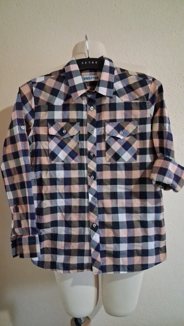 Erkek çocuk çok renkli, düğmeli uzun kollu gömlek. Notlu yaka, bol kesim ve midi boy. Sentetik kumaştan, pastel kareli desende. Günlük sokak stili için uygun.