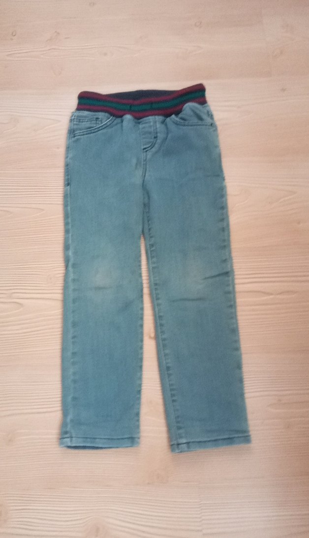 Erkek çocuklar için renkli elastik bel bantlı, regular fit mavi kot pantolon. Rahat ve günlük sokak stili için uygun.