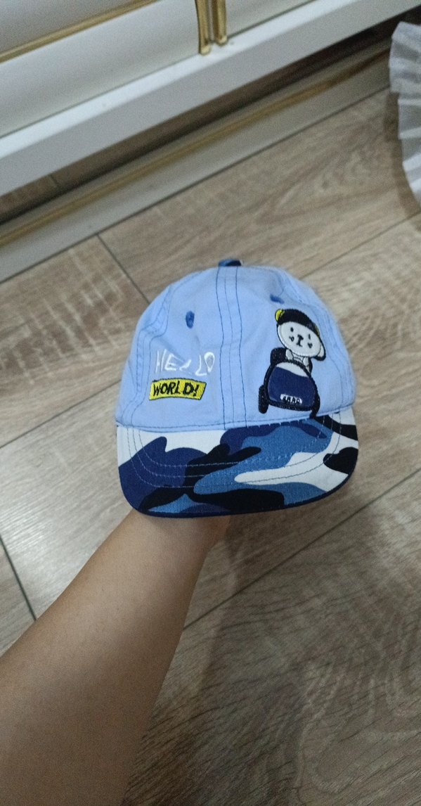 Erkek çocuk için renkli kamuflaj desenli, yumuşak polar kumaştan yapılmış, cırt cırtlı şapka. Üzerinde "WORLD!" yazısı ve sevimli karakter bulunur.