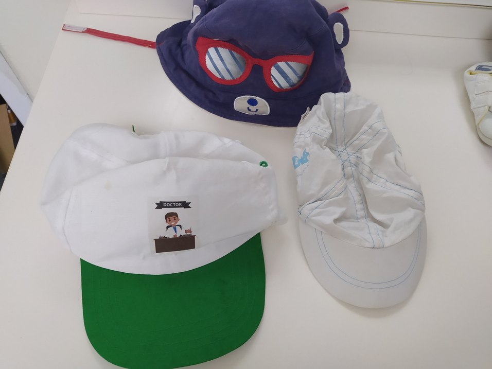 Sentetik kumaştan yapılmış, baskılı desenli ve cırt cırtlı üç renkli erkek çocuk şapkası seti. Beyaz, yeşil ve lacivert renkler mevcuttur.6 adet şapka