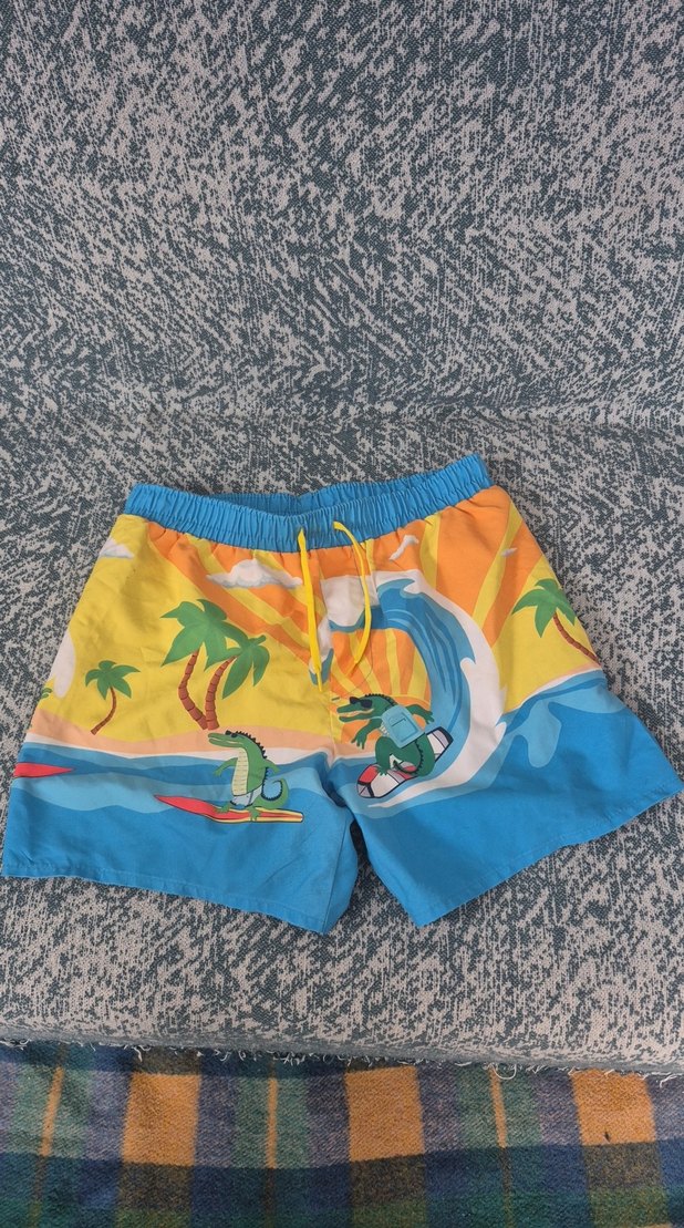 Erkek çocuklar için renkli tie-dye desenli, sörf temalı kısa kollu şort. Ayarlanabilir bel lastiği ile rahat kullanım sağlar.