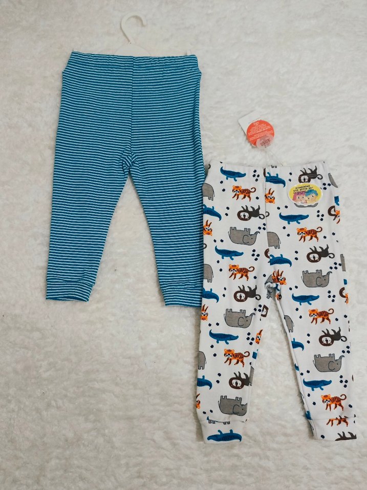 Yumuşak ve sıcak kumaştan örülmüş, renkli zebra ve çizgili desenlere sahip erkek çocuk pantolonları. Rahat kullanım için uygundur.