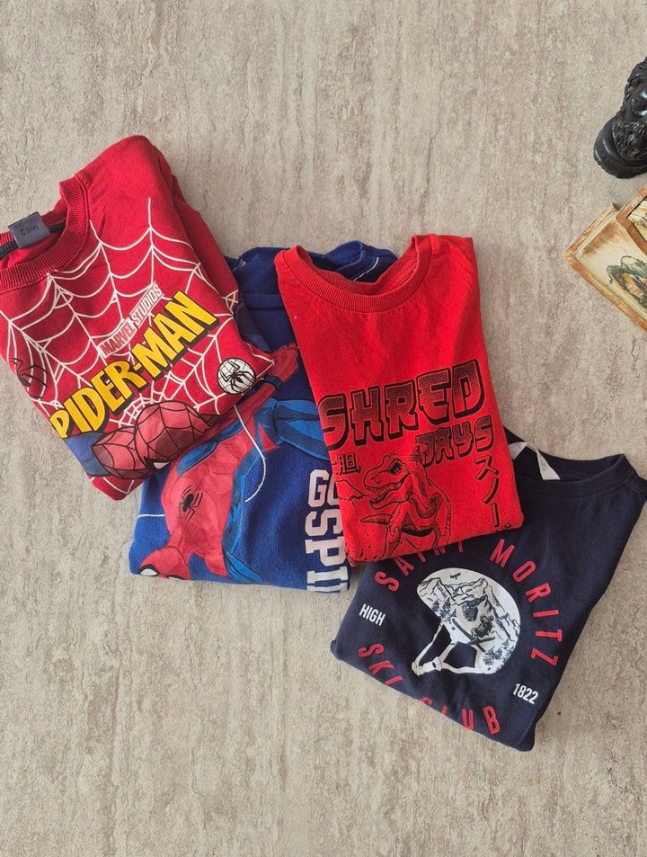 Pamuklu, renkli baskılı, uzun kollu erkek çocuk tişörtü. Bisiklet yaka 7/8 yaş 4 adet fiyatı dir