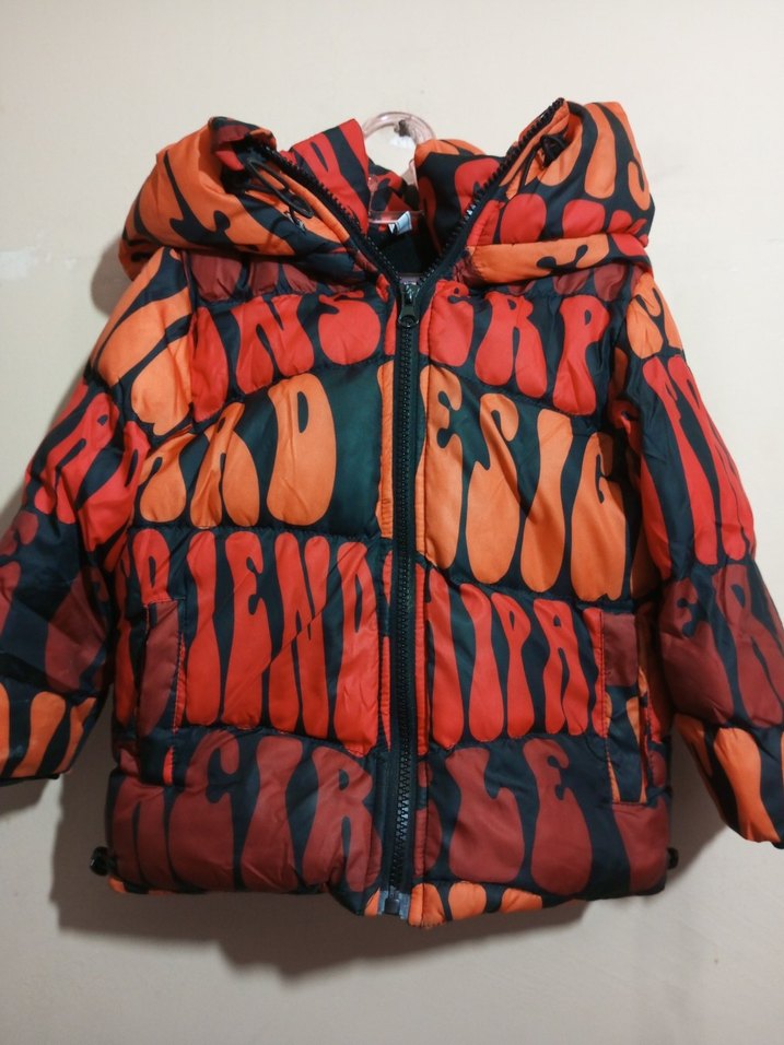 Erkek çocuklar için kapüşonlu, fermuarlı, yazılı desenli renkli ve fitted kesim mont. Sokak modasına uygun koyu tonlarda. Sıfır ayarında.