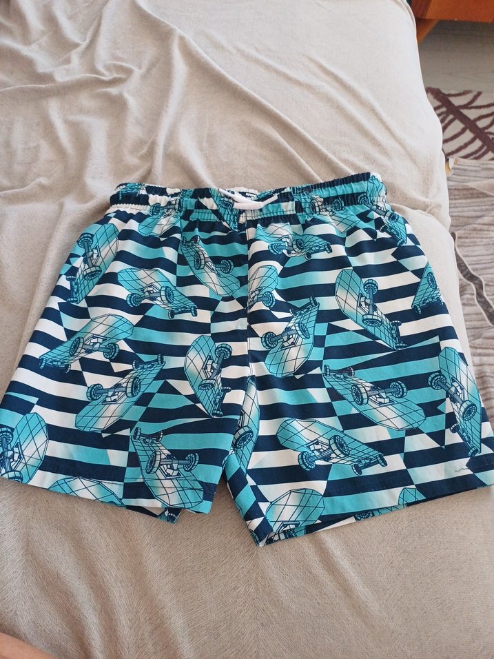 Rahat kesim, renkli mavi tonlarda, pileli tasarıma sahip erkek çocuk şortu. Yumuşak sentetik kumaştan üretilmiştir. Sayılı kullanıldı 8 yaş yazıyor ancak kilolu çocuklara olmaz,deniz şortu olarak da kullanılabilir.