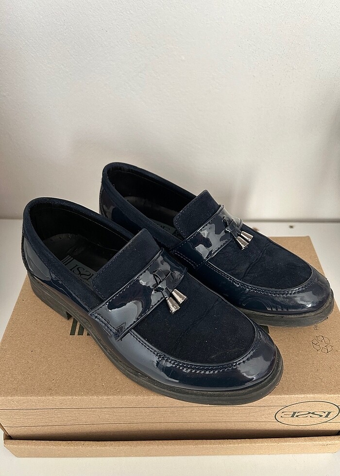 Lacivert süet ve rugandan oluşmaktadır. Klasik model, özel günler için kullanıma uygundur. Ön üst kısımda kat izi vardır.