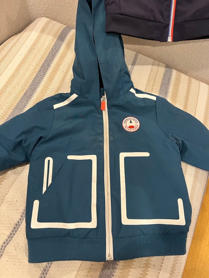 Erkek çocuklar için fermuarlı, kapüşonlu ve kesimli lacivert yağmurluk. Yumuşak ve sıcak tutan rüzgardan koruyan mont 3 yas içindir ancak kalıbı dar olduğundan biz 18 ay itibari ile kullandık
