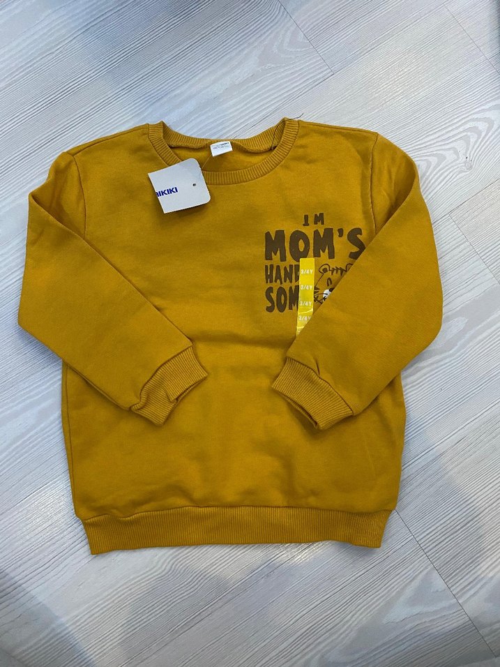 Sarı renkli, bol kesim, uzun kollu ve bisiklet yaka erkek çocuk sweatshirtü. Yumuşak, örme tüylü kumaştan üretilmiş olup, parlak baskılı yazı detayı vardır. Rahat ve günlük kullanıma uygun.