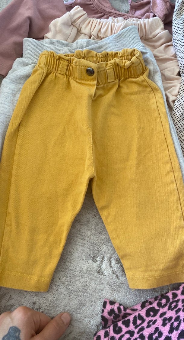 Sarı, bol kesim erkek çocuk pantolonları düğmeli bel ve yumuşak pamuklu kumaştan, sokak stili için uygun.