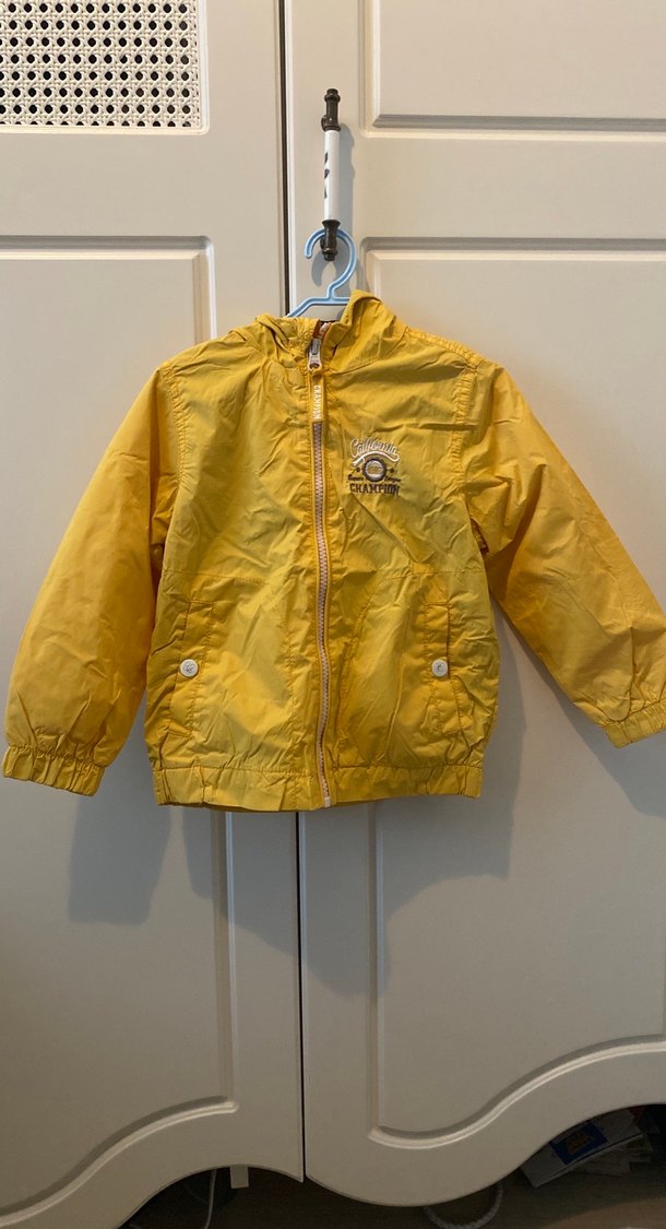 Sarı renkli erkek çocuk yağmurluğu, düğmeli cepler ve kesimli yaka ile. Rahat kesim ve yumuşak iç astar, günlük sokak stili için uygun. Parlak kumaş canlılık katıyor. ️
