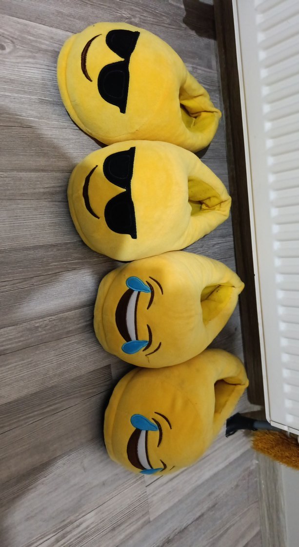 Erkek çocuklar için renkli, cesur pop kültür emoji desenli, yumuşak ve sıcak kumaştan yapılmış kabarık terlikler.