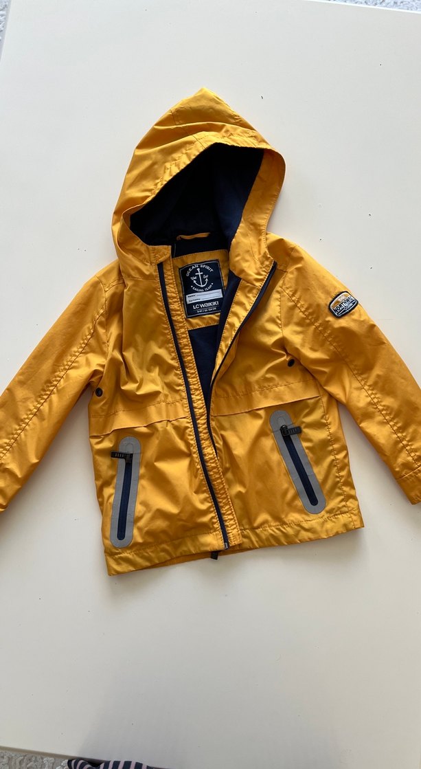 Erkek çocuklar için parlak sarı renkte, fermuarlı cepli ve bol kesim ceket. Notlu yaka ve baskılı detaylar içerir, günlük tarz için uygun. Mevsimlik çok kullanışlı 3-4 yaş