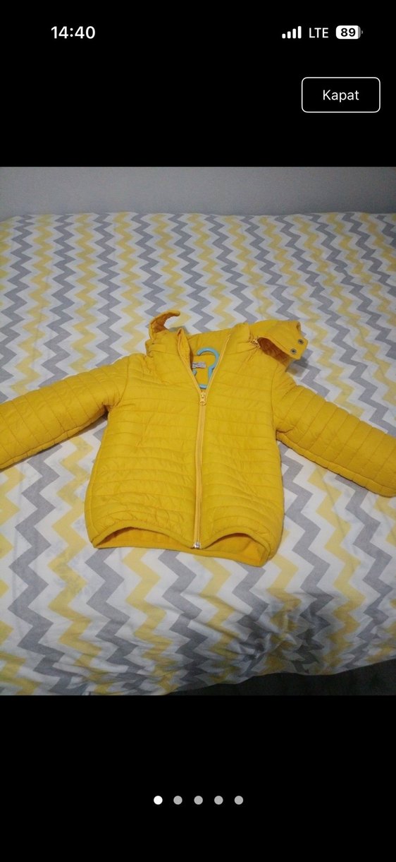 Erkek çocuklar için sarı kapüşonlu ve fermuarlı, yumuşak ve sıcak kumaştan yapılmış dar kesim mont. Trend sokak tarzına uygundur.