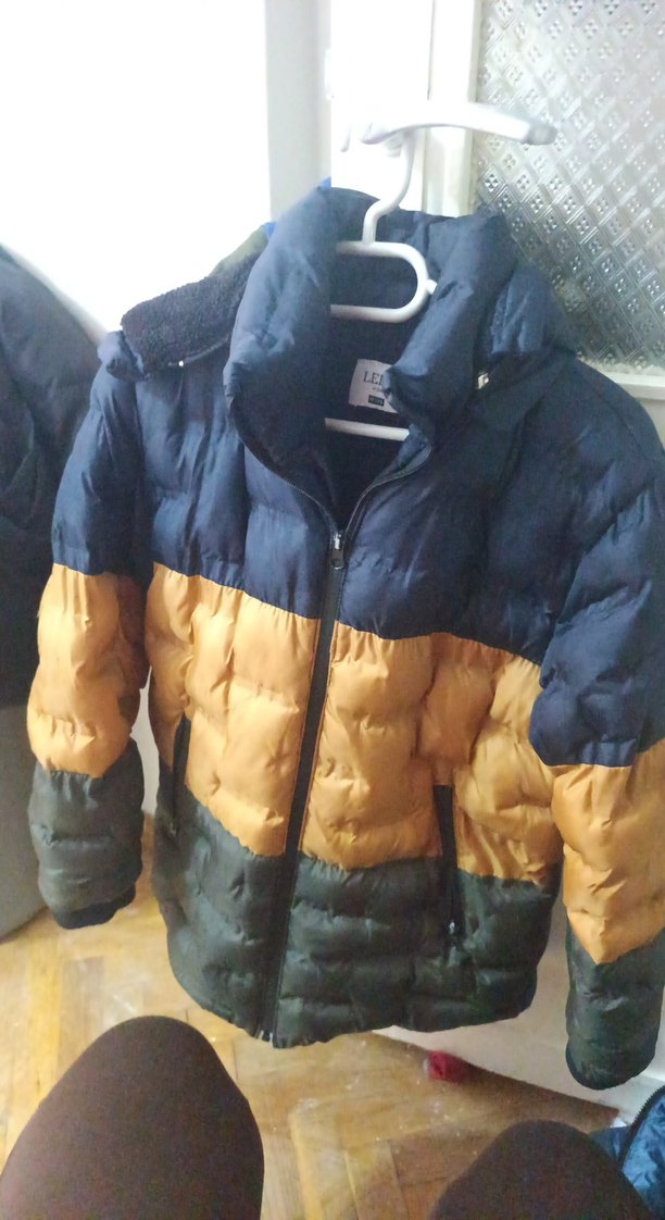 Erkek çocuk için sarı, lacivert ve yeşil renklerde, düğmeli ve kesimli yakalı, sıcak ve yumuşak kumaştan şişme mont. sadece geçen sene giydi oğlum yeni durumda..