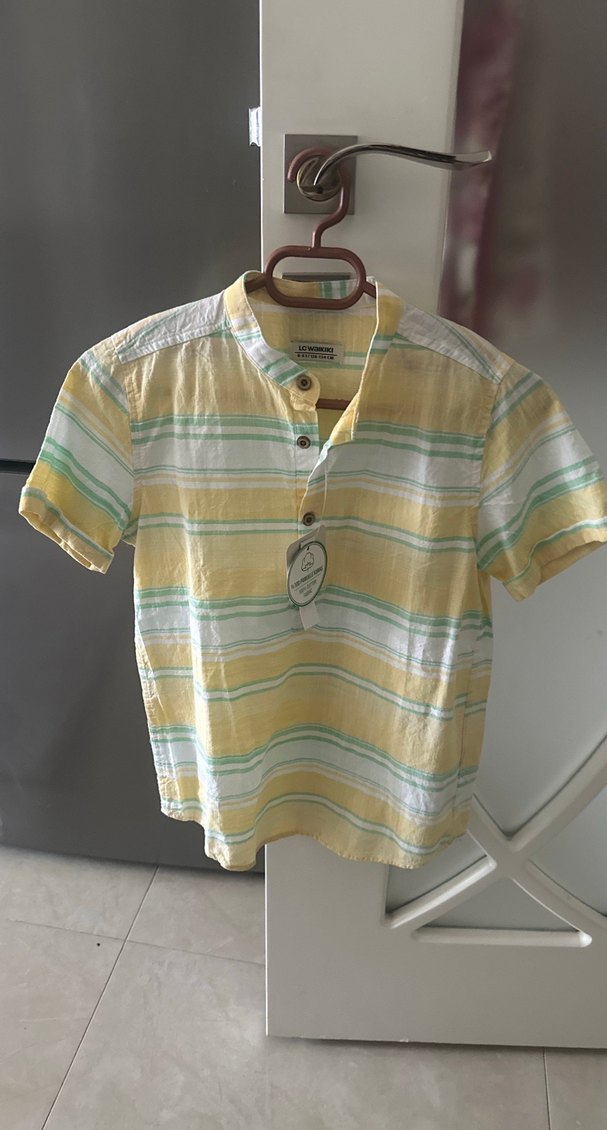 Erkek Çocuk Sarı Pamuklu Kısa Kollu Gömlek