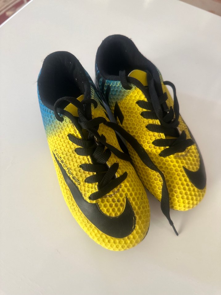 Sarı ve siyah detaylı, renkli tie-dye desenli erkek çocuk spor ayakkabısı. Kauçuk malzemeden üretilmiş, bağcık ve cırt cırtlı rahat kullanım sağlar.