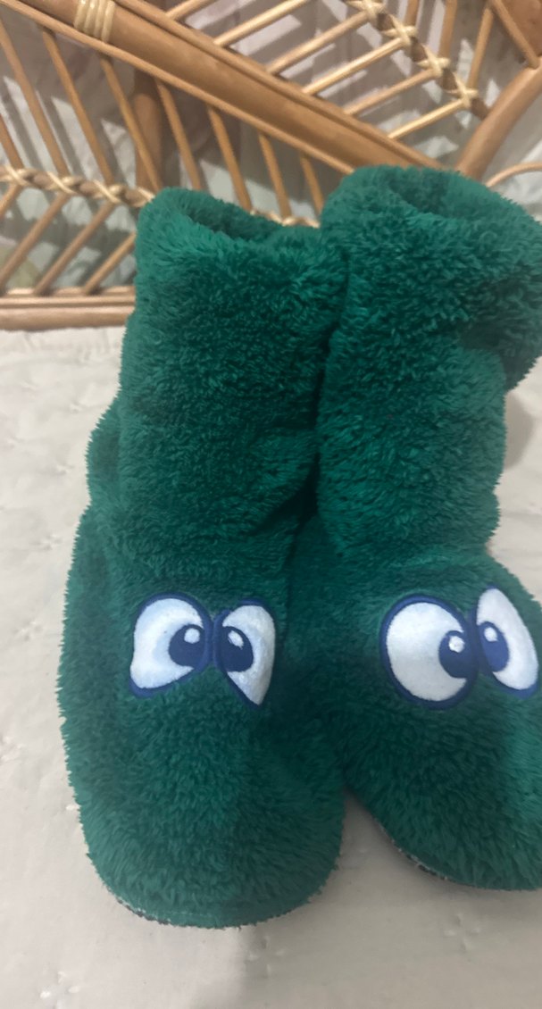 Yeşil renkte, nakışlı göz detaylı, yumuşak ve sıcak triko erkek çocuk ev terliği. Woody orjinal markadır ölçüleri ve numarası resimlerde detaylı belirtildi etiketinde 34-37 arası uyumlu olduğu belirtiliyor