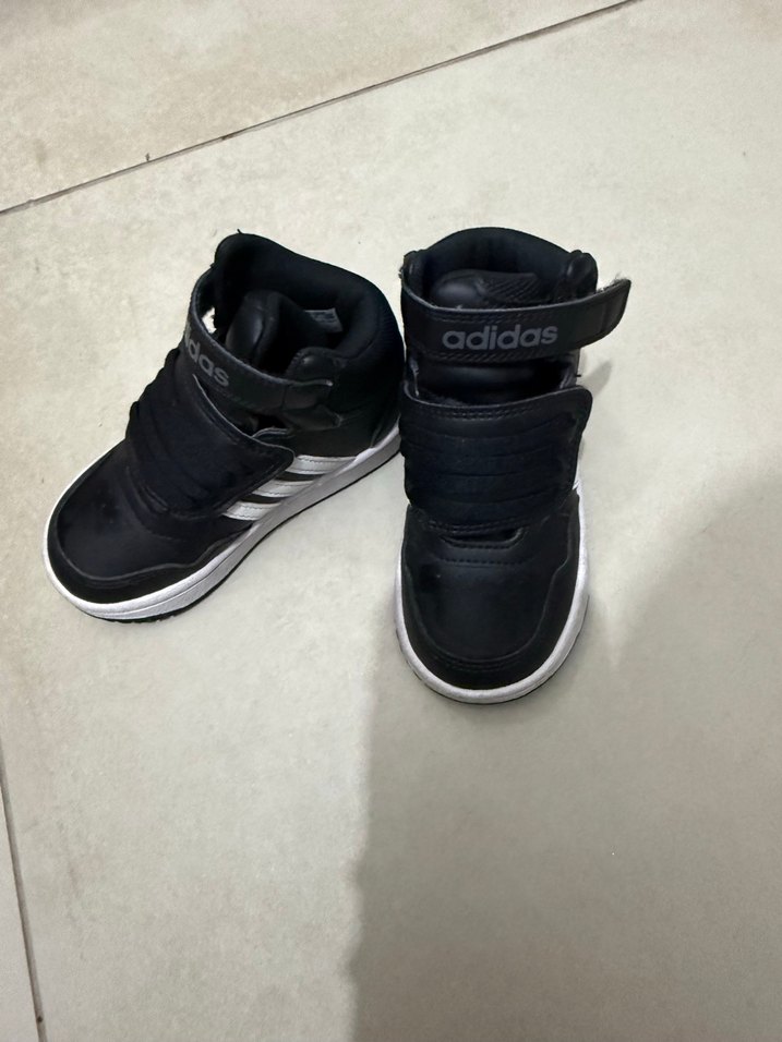 1kez anca giyildi. Adidas marka siyah erkek çocuk spor ayakkabısı, zebra desenli, cırt cırtlı ve kauçuk tabanlı, sokak tarzı için uygun sıfırdan farksız.