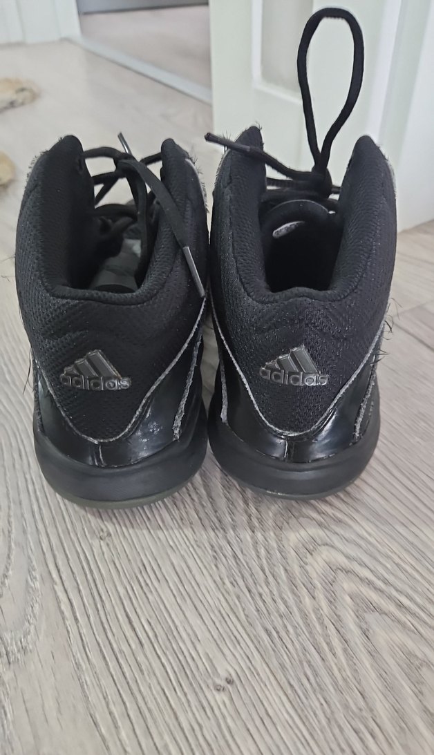 Siyah Adidas erkek çocuk spor ayakkabısı, kauçuk tabanlı orjinaldir