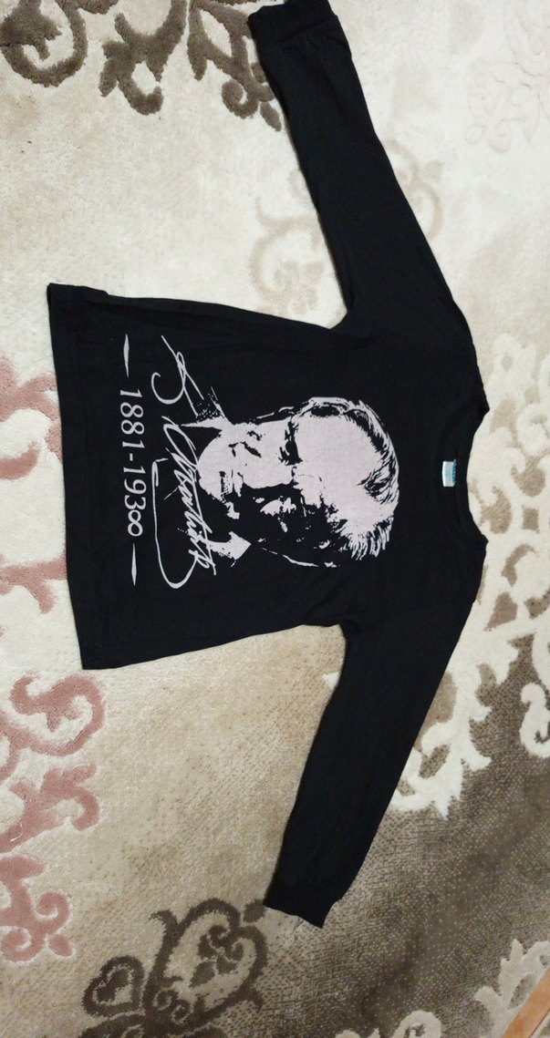 Siyah renkli, uzun kollu ve ATATÜRK baskılı erkek çocuk sweatshirtü. Bol kesim, yuvarlak yakalı,ATATÜRK detaylıdır. Hiçbir deformasyonu yok'tur tertemiz
