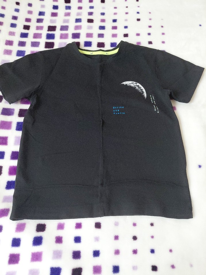 Siyah renkli, pamuklu kumaştan erkek çocuk tişörtü. Kısa kollu, geniş kesim ve yuvarlak yaka. Ön yüzde baskılı 'ECLIPSE' tasarımı bulunur.
