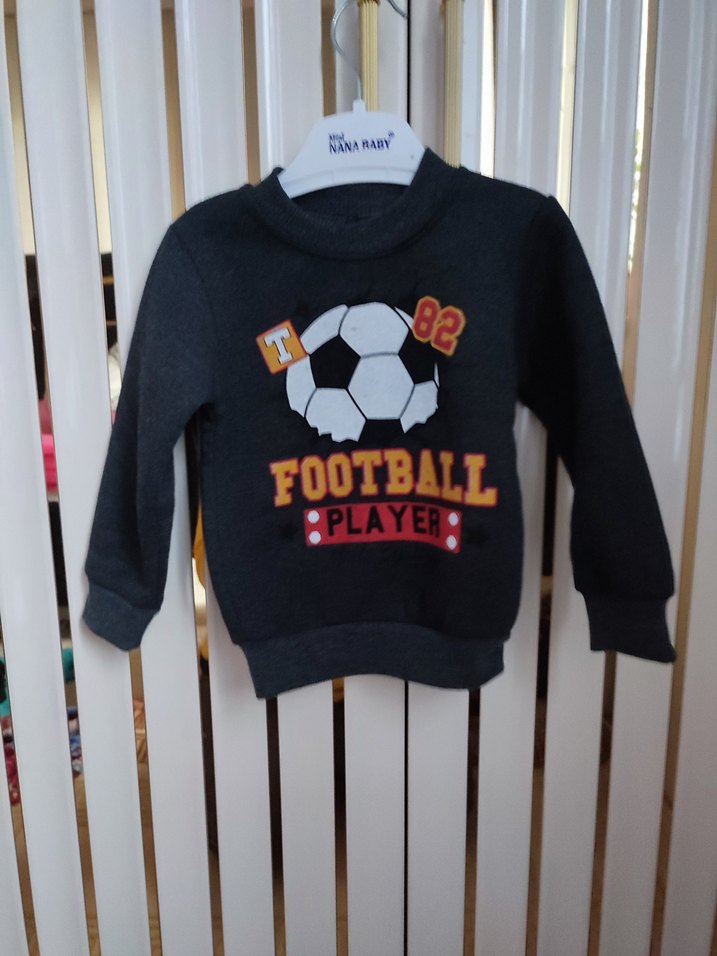 Siyah renkli, uzun kollu ve yuvarlak yakalı erkek çocuk sweatshirtü. Yumuşak ve sıcak örme kumaştan, üzerinde futbol topu ve 'FOOTBALL PLAYER' baskısı bulunur. ⚽