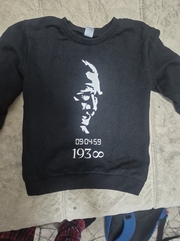 Siyah, yuvarlak yakalı ve uzun kollu sweatshirt, baskılı desenli ve bol kesim. Yumuşak, sıcak kumaştan üretilmiştir, rahat kullanım için uygundur.