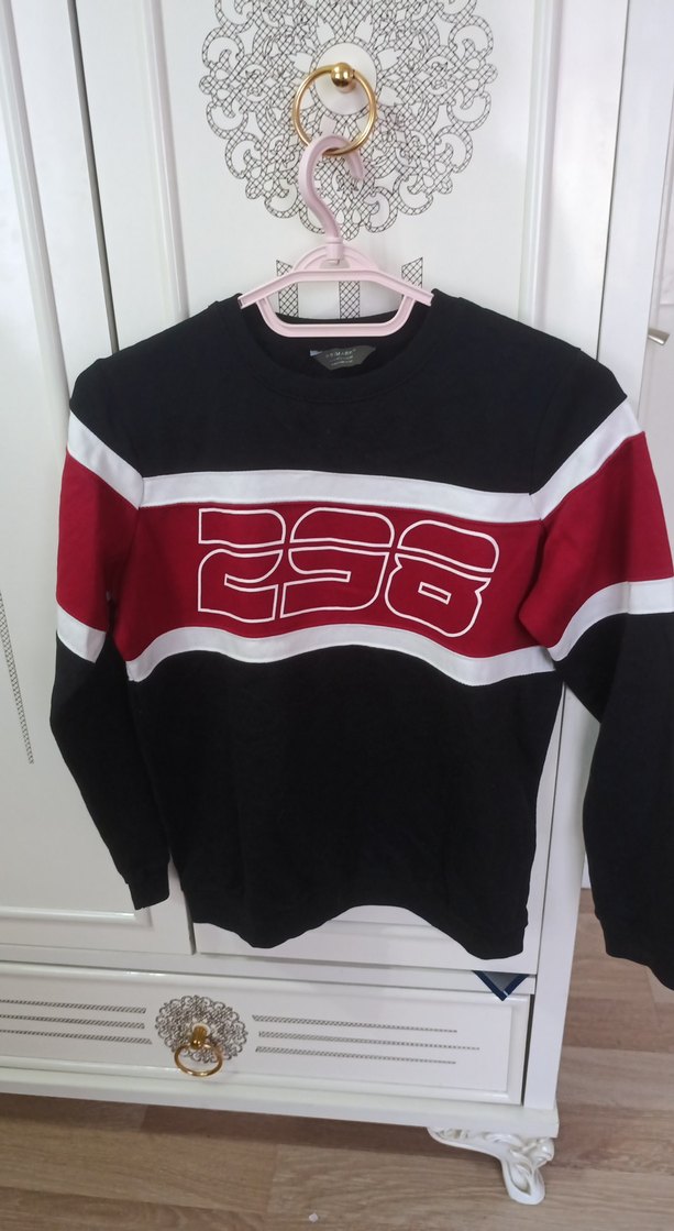 Erkek çocuk için uzun kollu, yuvarlak yaka ve bol kesim siyah baskılı sweatshirt. Örme ve yumuşak fleece kumaştan, sokak stiline uygun.