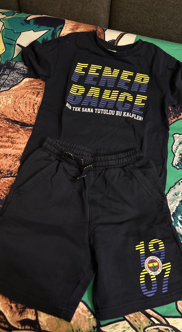 Çocuk 7-8 yaş için siyah baskılı sweatshirt ve bol kesim pantolon takımı. Pantolon bel detaylı ve yumuşak, sıcak tutan kumaştan üretilmiştir. Trend sokak stili için uygundur.