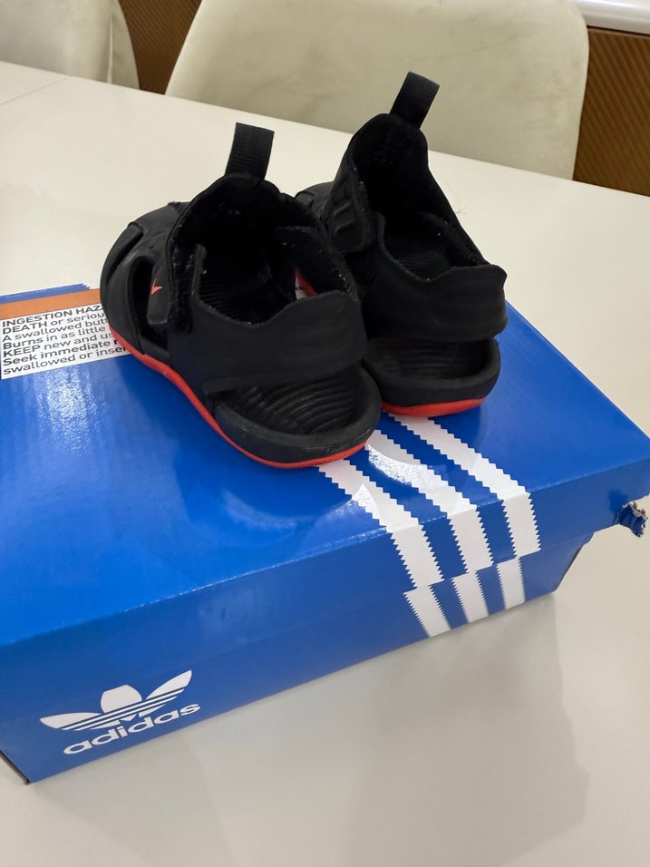 Siyah renkli, baskılı desenli ve kolay giyimi sağlayan Velcro bantlı çocuk terliği. Dayanıklı kauçuk malzemeden üretilmiştir, sokak stili için uygundur.