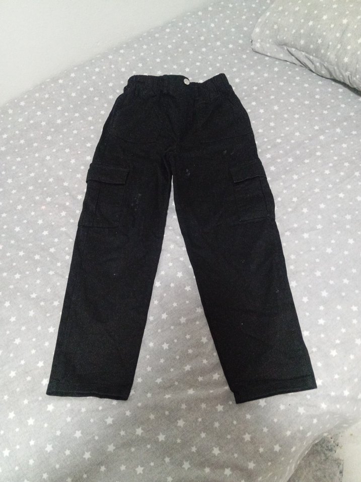 Erkek çocuklar için siyah, bol kesim, kemerli pantolon. Yumuşak kumaştan ve düz tasarımlı, üzerinde küçük 'A' harfi detayı bulunur. kız içinde uygundur Kızım giydi