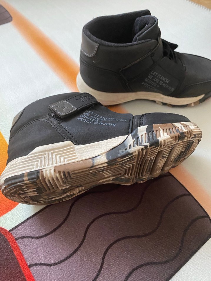 Erkek çocuk botları kauçuk tabanlı, gri-siyah renkli ve baskılıdır. Kolay kullanımlı cırt cırtlı bant içerir, trend sokak giyimine uygundur.