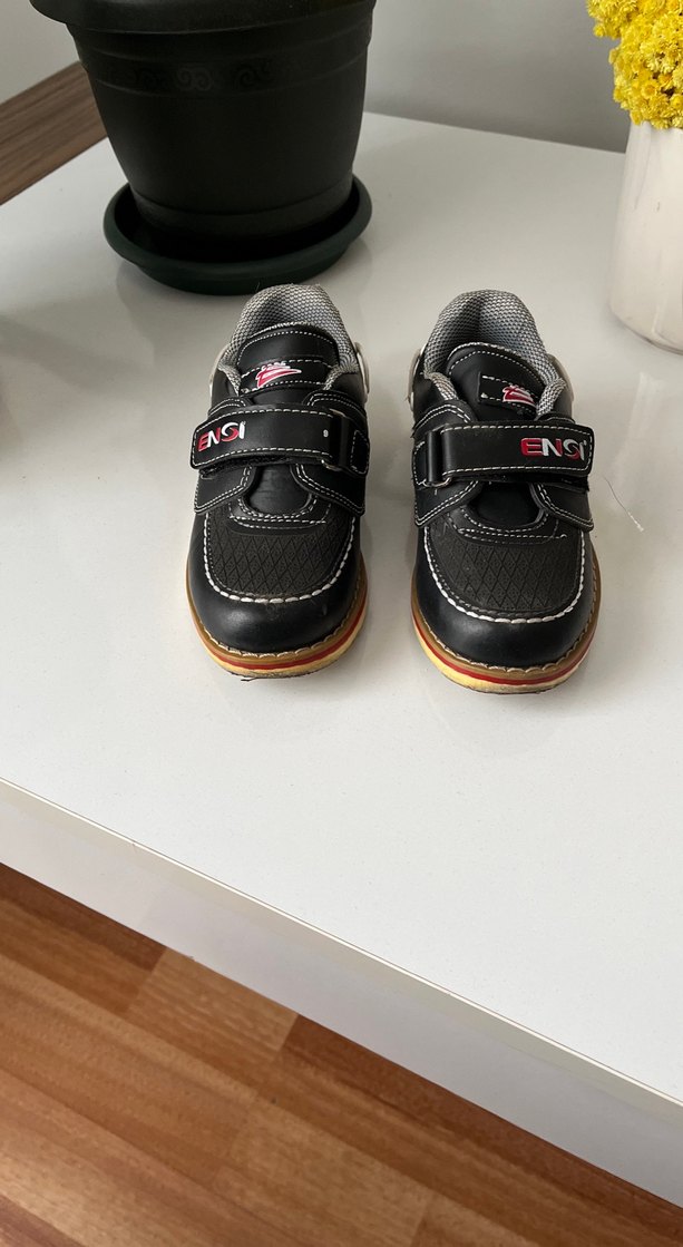 Erkek çocuklar için siyah renkli, cırt cırtlı ve kauçuk tabanlı spor ayakkabılar, dayanıklı ve kolay giyilir.