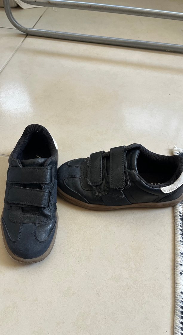 Siyah, cırt cırtlı bantlı ve kauçuk tabanlı, sade sokak tarzı erkek çocuk spor ayakkabısı. Rahat ve kullanışlı.