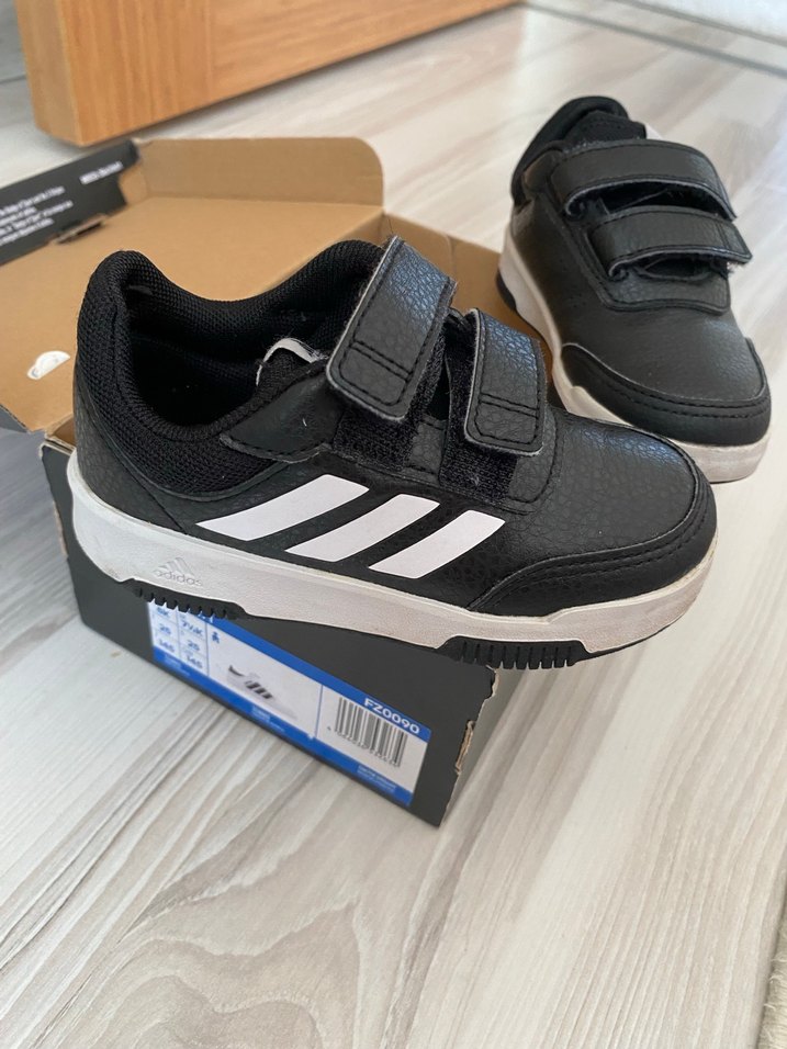 Siyah renkli erkek çocuk spor ayakkabısı, cırtcırtlı bantlı ve kauçuk tabanlı, baskılı detaylarla sokak stiline uygun. Çok az giyildi yeni gibi orijinaldir sıfırı 2.700 civarındadır