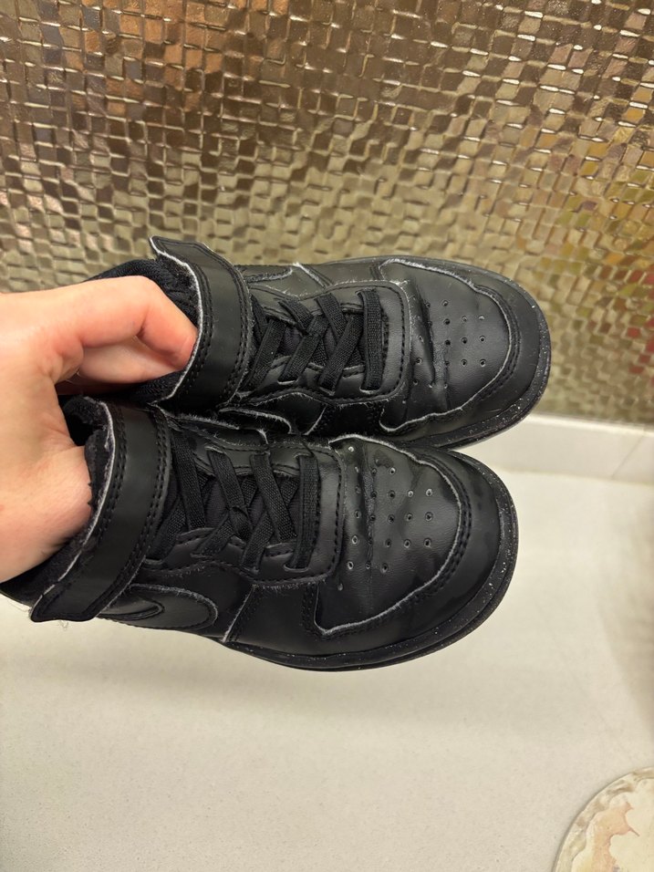 Siyah renkli, cırtlı ve lastik tabanlı erkek çocuk spor ayakkabısı. Sokak stili ve sade tasarıma sahip.