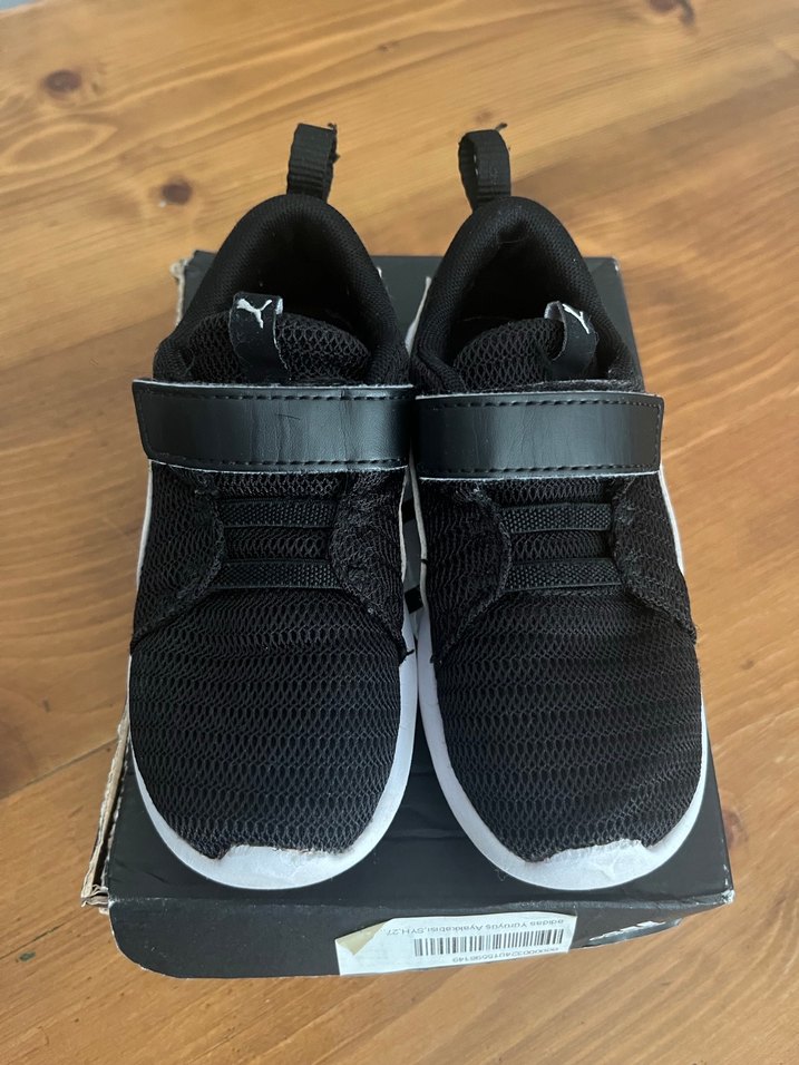 Siyah erkek çocuk spor ayakkabısı, cırtlı bantlı ve kauçuk tabanlı, nefes alabilen file üst yüzeye sahip.
