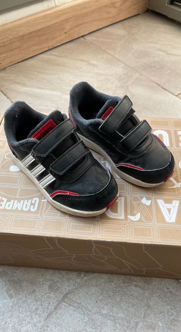 Siyah renkte, gri çizgili detaylı, cırt cırtlı erkek çocuk spor ayakkabısı. Kauçuk tabanlı, sokak stiline uygun rahat ve şık model. arka kısmında hafif tüylenme var fotolarda beliryildi