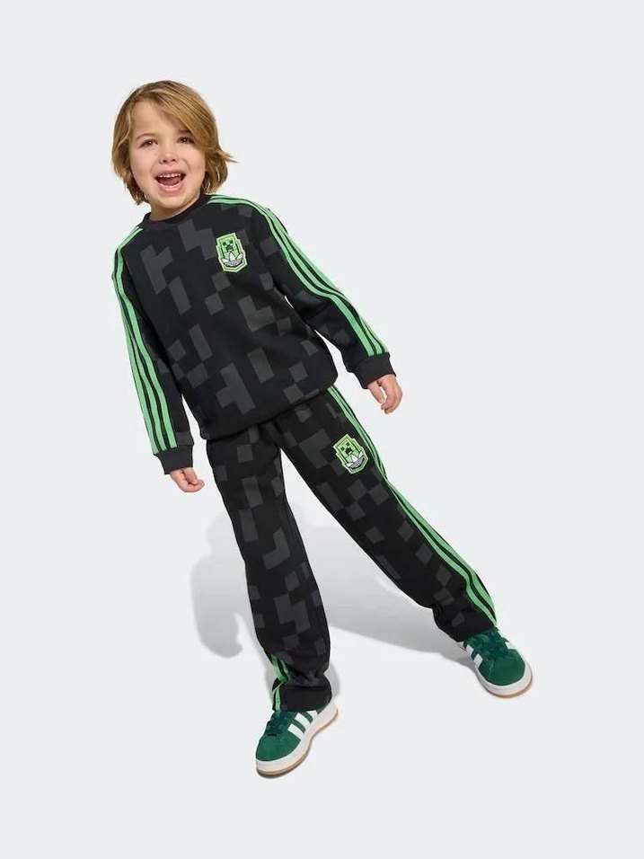 Erkek çocuklar için bol kesim, bisiklet yaka ve siyah üzerine yeşil çizgili eşofman takımı. Yumuşak ve sıcak kumaştan, velcro detaylıdır. Sokak modasına uygun. NEW MODEL 5030 Adidas & Minecraft 3-4/ 4-5/ 5-6/ 9-10