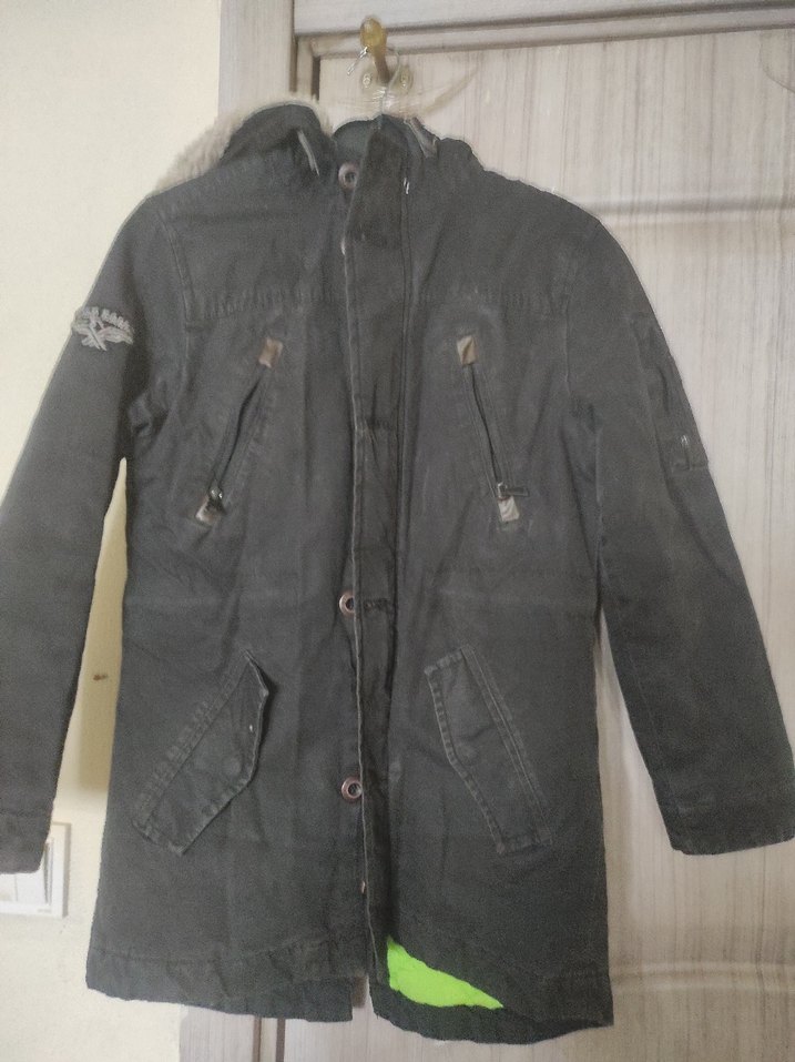 Düğmeli ön, kesik yaka ve regular fit özellikli siyah denim erkek çocuk kabanı. Desensiz, günlük kullanıma uygun trend sokak stili.